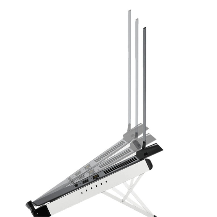 Bu noutbuk stendi hamar sürüşən rulman dizaynı ilə sürətli və qüsursuz bir saniyəlik açılış təklif edir. Davamlı və estetik cəhətdən xoşagələn alüminium ərintisindən hazırlanmış, parlaq görünüşü ilə öyünür. Altı tənzimlənən hündürlüklə siz ehtiyaclarınıza uyğun bucağı tənzimləyə bilərsiniz və möhkəm arxa alüminium ərintisi üçbucaqlı dəstəyi sabitliyi təmin edərək yazmağı yırğalanmadan təmin edir. Tənzimlənən baffle müxtəlif qalınlıqdakı noutbukları yerləşdirir və siz iki zərif rəng variantından birini seçə bilərsiniz: Qara və Ağ.